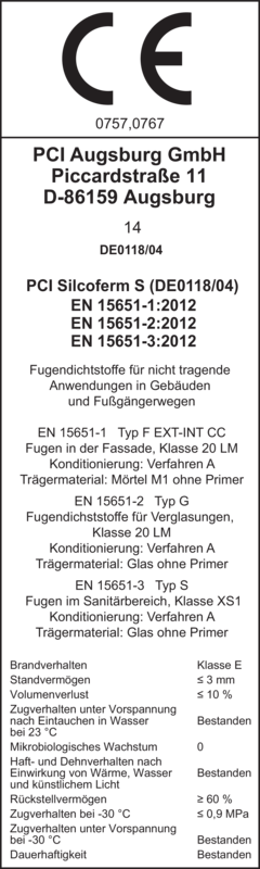 – EN 15651-3 TYP S Fugen im Sanitärbereich, Klasse XS1