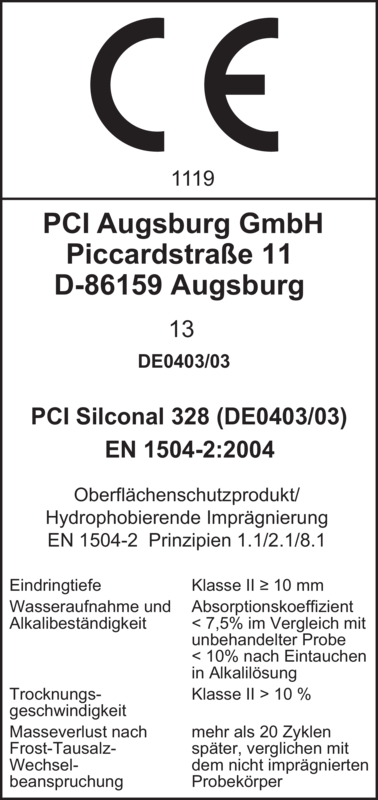- Zertifiziert nach EN 1504-2 Eindringtiefe Klasse II.