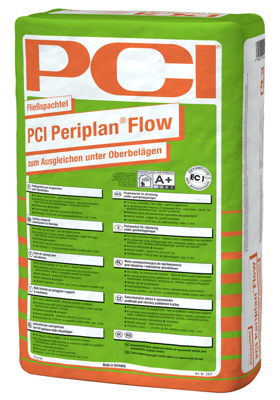 Mit PCI Periplan Flow komplettiert das Unternehmen die PCI Periplan-Familie um einen neuen Fließspachtel mit außergewöhnlichen Verlaufseigenschaften. PCI Periplan Flow verläuft von selbst in jede Ecke, ohne jegliche Hilfsmittel und ohne zusätzliches, zeitaufwändiges Nacharbeiten mit Kelle oder Rakel, dafür mit einer langen Verarbeitungszeit von ca. 45 Minuten. Der extrem leichte Verlauf ermöglicht einen sehr schnellen und kostengünstigen Baufort­schritt.