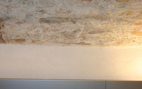 Wände mit PCI Saniment-System bearbeiten: Zuerst Dichtputz PCI Saniment DP zum Ausgleichen, danach PCI Saniment DS zum Abdichten, dann Haftputz PCI Saniment HA und abschliessend PCI Saniment Classic