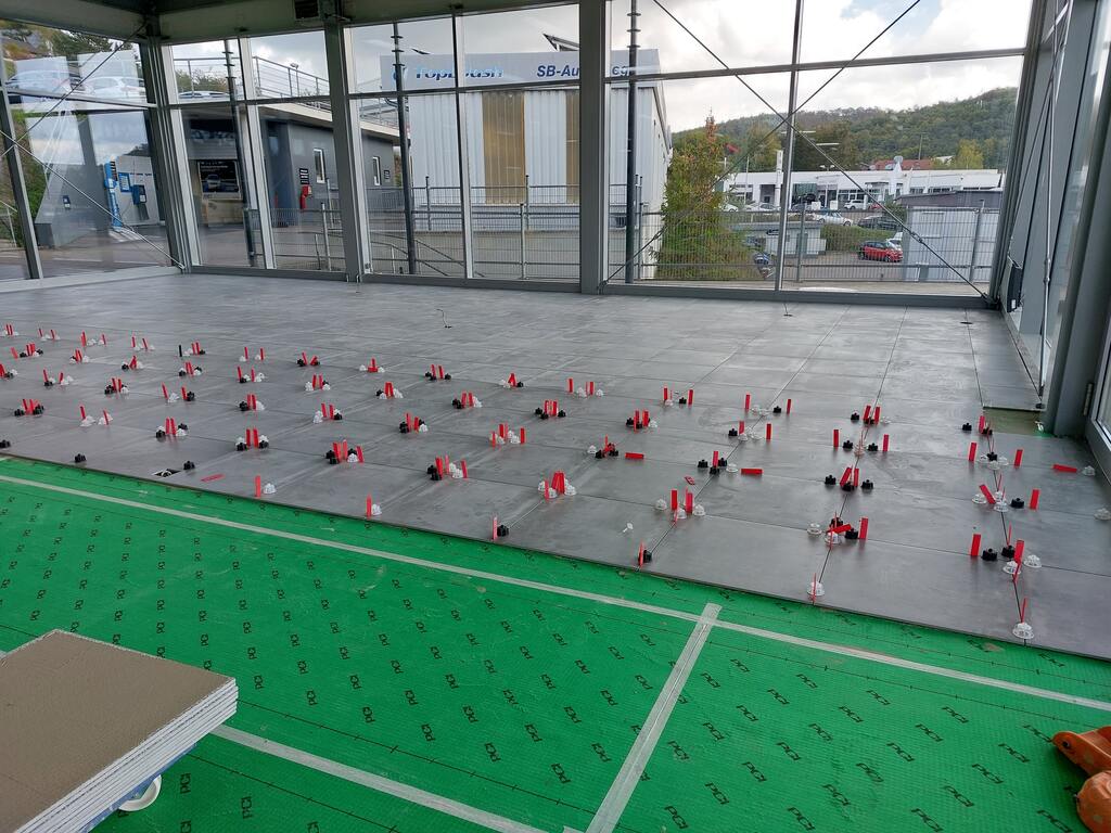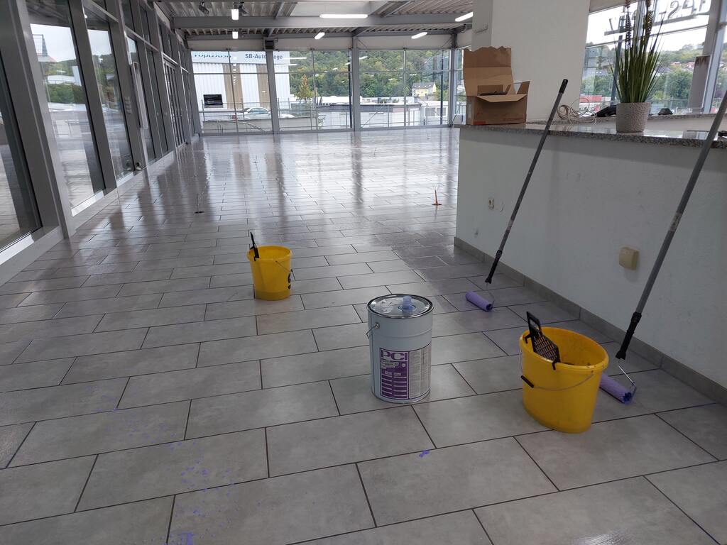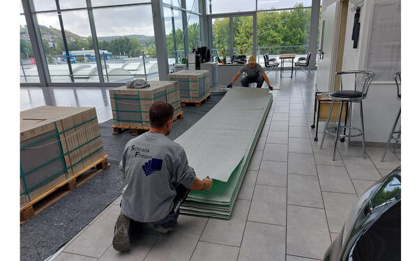 Wie schon zuvor wandte sich Volker Schrank, Inhaber des Fliesenlegermeisterbetriebs, an PCI-Fachberater Peter Scharf und PCI-Anwendungstechniker Richard Rast für eine Aufbauempfehlung. „Wir mussten den Bestandsboden genau unter die Lupe nehmen. Und genau das bietet die PCI-Anwendungstechnik mit ihrem Beratungsangebot. Das macht die Zusammenarbeit für mich so wertvoll. Auf den empfohlenen Aufbau und die Produktauswahl kann ich mich verlassen. Erst kürzlich habe ich mich in einem der Autohäuser vor Ort davon überzeugt: die Fliesen liegen genau so, wie wir sie vor über fünf Jahren eingebaut haben. Ohne eine einzige schadhafte Stelle. Deshalb bin ich absolut systemtreu", erzählt Volker Schrank. Nach dem gemeinsamen Vor-Ort-Termin im Autohaus in Erlenbach erhielt er die Aufbauempfehlung mit den passenden Produkten und Hinweisen zur Vorgehensweise.