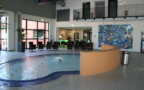 Die rund 1250 m² große Halle verfügt über ein Schwimmerbecken 25x16,66 m (26°C Wassertemperatur) mit Sprungturm, ein rund 150 m² großes Nichtschwimmerbecken (22-30°) sowie ein Planschbecken (32°C) mit ca. 25 m² Wasserfläche. Die Becken im Hallenbad wurden als wasserundurchlässige Betonbecken ausgeführt. Hinsichtlich der monolithisch gegossenen Wasserbecken mit der Beckenkopfvariante „System Zürich“ waren vom verarbeitenden Fliesenfachbetrieb erhöhtes Fachwissen und Erfahrung im Schwimmbadbau gefordert. Den Zuschlag erhielt deshalb das Fliesenfachgeschäft Schmelzer GmbH aus Saarbrücken/Ensheim. Das Unternehmen ist über die Grenzen des Saarlandes hin bekannt als Spezialist für Großobjekte und Schwimmbadanlagen, was sich auf den gesamten Bauablauf sehr positiv auswirkte. In Zusammenarbeit mit der anwendungstechnischen Abteilung und dem zuständigen Verkaufsberater der PCI – Augsburg GmbH als Hersteller der bauchemischen Spezialprodukte sowie der pünktlichen Lieferung auch der keramischen Ware über den Großhandel Vatter Baukeramik GmbH (Kaiserslautern) konnte ein termingerechter Zeitablauf der anspruchsvollen Arbeiten sichergestellt werden.
