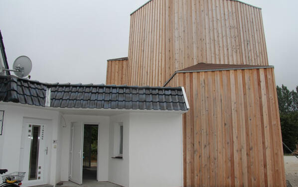 Eine Wellness-Oase ganz aus Salz verwirklichte das Ehepaar Günther in Trinwillershagen unweit der Ostseeküste. Ein Salzkristall stand Pate für den sechzehn-eckigen Grundriss der Salztürme auf einer Grundfläche von rund 100 m2. 38 Tonnen Salz aus Pakistan ließen die Günthers für die Innenauskleidung einschiffen, 32 Tonnen davon wurden als Fliesen, Brocken und Ziegel verbaut. Im Erdgeschoss und im ersten Obergeschoss sollten rötlich schimmernde Salzplatten und Bruchsteinmauerwerk die Wände und Böden verkleiden. Für den Bereich Massage & Wellness im zweiten Obergeschoss entschieden sich die Bauherren für das fast weiße, durchscheinende Halitsalz.