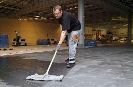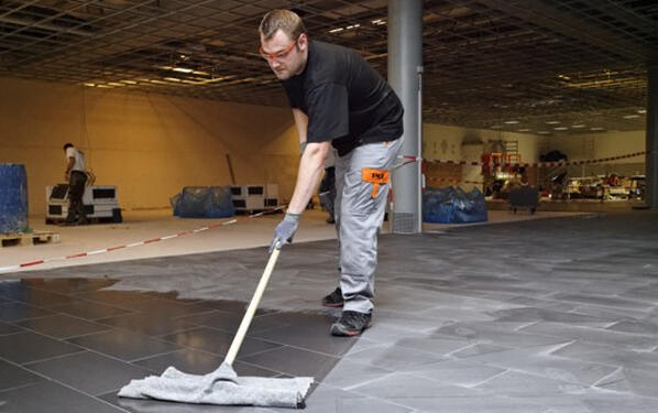 Ein neues Ladenkonzept erforderte im REWE Markt in Lörrach die Bodensanierung auf einer Fläche von rund 3.200 m2. Verlegt wurden großformatige Feinsteinzeugfliesen mit PCI-Produkten. Um sicher-zustellen, dass die geplante Vorgehensweise hundertprozentig zur Baustellensituation passt, führten die Bauprofis aus Augsburg Vor-Ort-Prüfungen durch. Die Vorgehensweise und Produktauswahl für die Verlegung der Feinsteinzeugfliesen Topgres (30 x 60 x 2,5 cm) stimmte der beauftragte Fliesenbetrieb Hoffmann & Co. GmbH mit PCI-Fachberater Bernd Jolly und PCI-Anwendungstechniker Ingo Grollmisch ab.