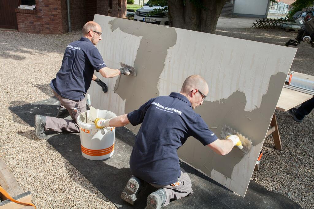 Großformatige Fliesen liegen voll im Trend. Sie wirken nicht nur edel und modern, sondern lassen kleine Räume größer und große Räume ruhiger erscheinen. Sein 60 m2 großes Wohnzimmer verlegte Fliesenlegermeister Jens Pomplun aus Linnich deshalb mit Feinsteinzeugfliesen im Format 270 x 120 cm. Von der PCI-Beratung und der professionellen Ausführung profitierte er nicht nur privat. Gleichzeitig konnte er wichtige Erfahrungen und Fachkenntnisse für das neue Aufgabenfeld „Verlegung von Großformaten“ sammeln.