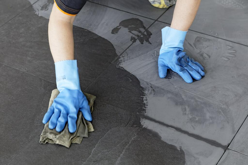 Um Überzähne zu verhindern, fixierten die Fliesenleger die Platten mit einem Nivelliersystem. Nach Trocknung des Mörtels wurden Laschen und Keile entfernt und die Fliesen mit PCI Nanofug Premium verfugt. Der Fugenmörtel eignet sich für die Verarbeitung in Wohnräumen und in Nassbereichen und lässt sich aufgrund seiner langen Verarbeitungszeit von circa 40 Minuten komfortabel verarbeiten. Für den Bauherrn entscheidend sind die Produkteigenschaften, die für Langlebigkeit und dauerhafte Schönheit der Fugen sorgen: Sie weisen eine erhöhte Beständigkeit gegenüber handelsüblichen Reinigern auf und bieten verbesserten Schutz gegen bestimmte Schimmelpilze und Mikroorganismen. Dank des Easy-to-clean-Effekts lassen sich die Fugen leicht reinigen. Die Dehnungs- und Anschlussfugen wurden mit den sehr emissionsarmen Silikon-Dichtstoffen PCI Silcofug E und PCI Silcoferm S verfüllt.