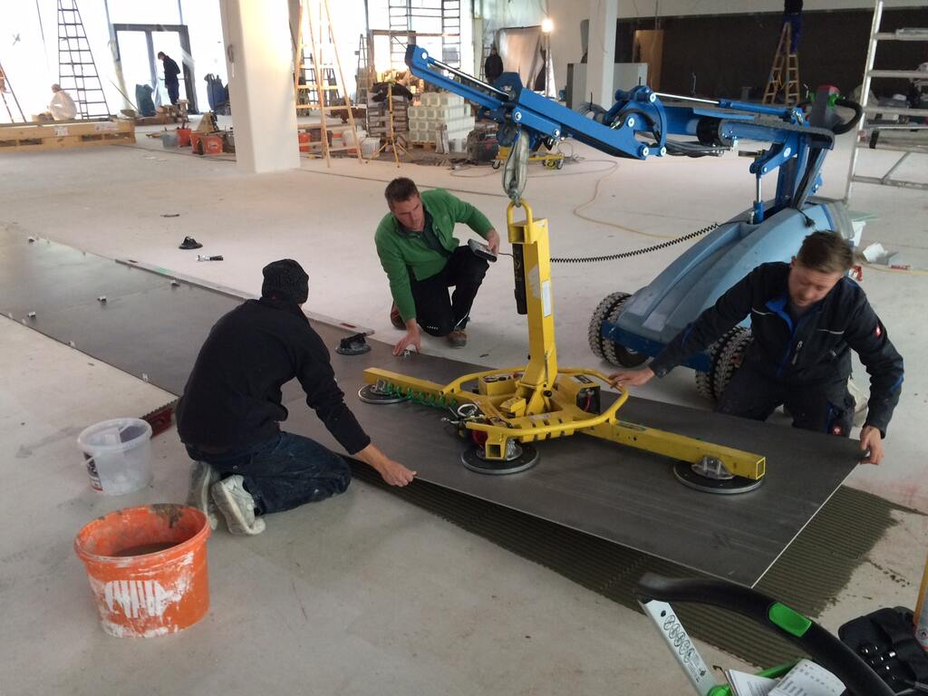 Verlegung großformatiger Bodenfliesen mit Maschinentechnik