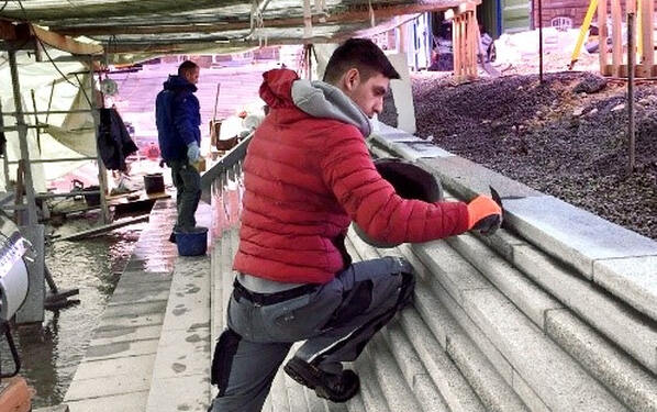 Im Winter verlegt: Naturwerksteine für die Remstal Gartenschau 2019