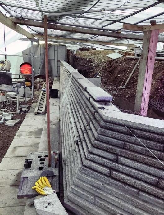 Verlegen von Granitplatten sowie Erstellen einer Granit-Schichtmauer im Winter