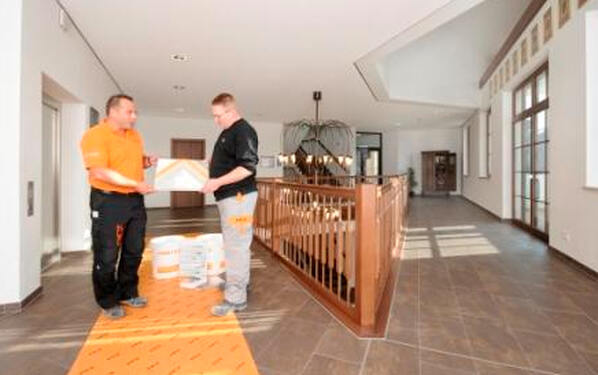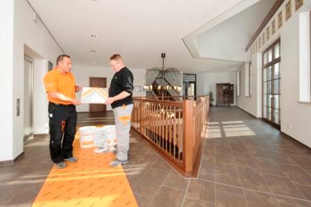 Feinsteinzeug im Format 30 x 60 auf Entkopplungsschichten und mit Flexmörteln auf Heizestrich verlegen