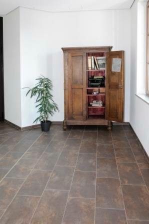 Für die insgesamt 800 m² Bodenfläche im Foyer, dem Ratssaal, den Sitzungssälen, Treppenhäusern und Fluren kamen 30 x 60 cm messende Fliesen zum Einsatz. In den zwei Treppenaufgängen wurden entsprechende Tritt- und Setzstufen verwendet. Bei dem Wandbelag handelt es sich um 30 x 60 cm messende Steingutfliesen. Auf dem Boden wurden auf insgesamt 80 m² 30 x 60 cm große Feinsteinzeugfliesen verlegt. Die vier Mitarbeiter des Unternehmens Ralf Schmidt erledigten die Arbeiten in drei Etappen: Zunächst wurden die Wände belegt, anschließend die Böden und zum Schluss die Treppenhäuser. Um den Fliesenbelag vor späteren Schäden durch Verformungen des gut vier Wochen alten Zementestrichs zu schützen, wurde nach einer Grundierung des Estrichs mit PCI Gisogrund 404 in der Verdünnung 1:1 mit Wasser die Abdichtungs- und Entkopplungsbahn PCI Pecilastic U verlegt. Die gebrauchsfertige Bahn wird lediglich zugeschnitten und auf den Untergrund aufgeklebt. Sie gleicht Spannungen, Risse, Untergrundverformungen sowie Temperaturschwankungen zuverlässig aus. Letzteres ist besonders in der Kombination mit der Fußbodenheizung von Bedeutung. Um nachträglichen Verformungen einen sicheren Riegel vorzuschieben, wurde die Entkopplungsbahn PCI Pecilastic U mit dem leichten Fließbettmörtel PCI Nanoflott light auf dem Boden verlegt. Dazu wurde der Mörtel auf dem Boden aufgekämmt, die Bahn eingelegt und mit einem Holzbrett fest angedrückt. Die Stöße wurden mit Kreppband gesichert. Nach zwölf Stunden konnten auf diesem Ensemble bereits die Fliesen verlegt werden. Auch dazu wurde PCI Nanoflott light verwendet. Bei den Wandfliesen in den sanitären Einrichtungen sorgte dagegen PCI Nanolight für festen Halt. Um die ästhetische Wirkung der Flächen perfekt abzurunden, füllen farblich abgestimmte Fugenmassen den Raum zwischen den Fliesen. Bei den dunkelbraunen Bodenfliesen entschied man sich für PCI Rapidfug in der Nuance Zementgrau und zwischen den sandfarbenen Wandfliesen sorgt der variable Flexfugenmörtel PCI Nanofug im Farbton Pergamon für ein harmonisches Bild.
