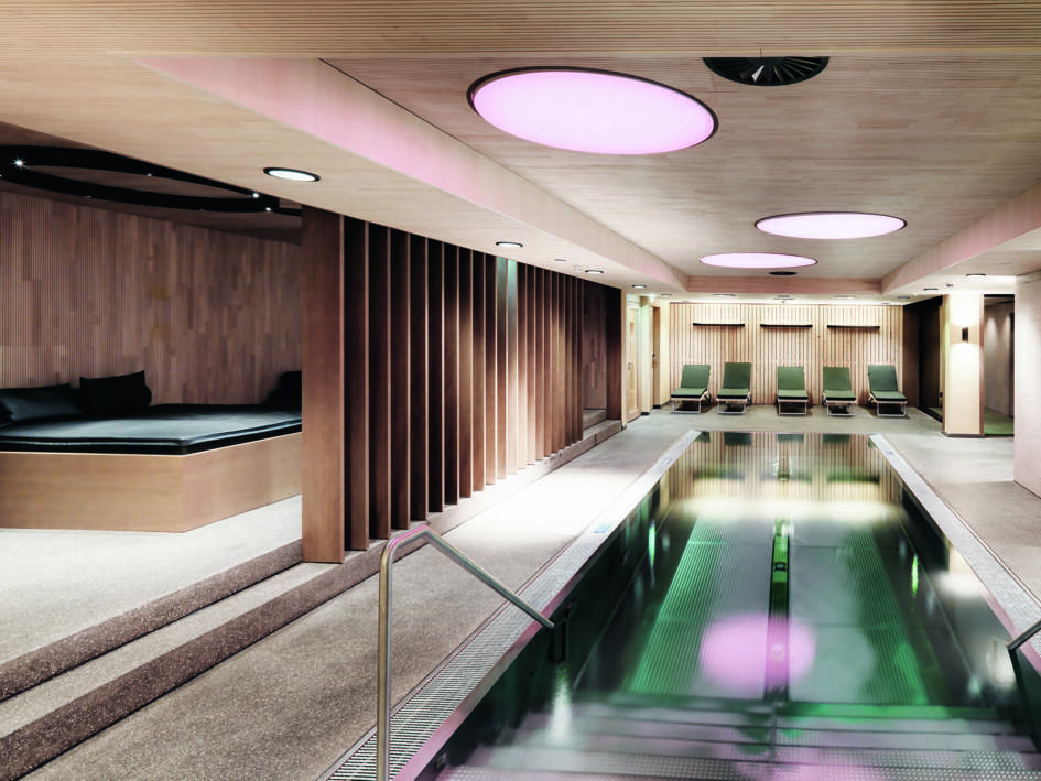 Im Dorf Kals am Großglockner liegt das Luxushotel Gradonna****s Mountain Resort auf 1.350 Metern Seehöhe – umgeben von mehr als 60 Dreitausendern und 110 Kilometern Skipisten. Die Wahl des Bau-platzes erwies sich als Glücksfall, denn man stieß bei der Bebauung des bis dahin unberührten Hanges auf Kalser Marmor. Der regionale Naturstein wurde Teil des Gestaltungskonzeptes, das auf heimische Materialien ausgerichtet ist. Die PCI Augsburg GmbH begleitete die Verlegung des Natursteins und betreute die komplexen Abdichtungs-arbeiten im 3.000 m2 großen Spa-Bereich sowie die umfangreichen Fliesenverlegearbeiten.