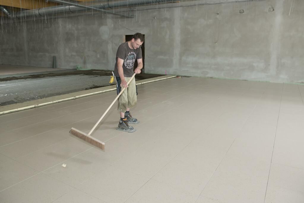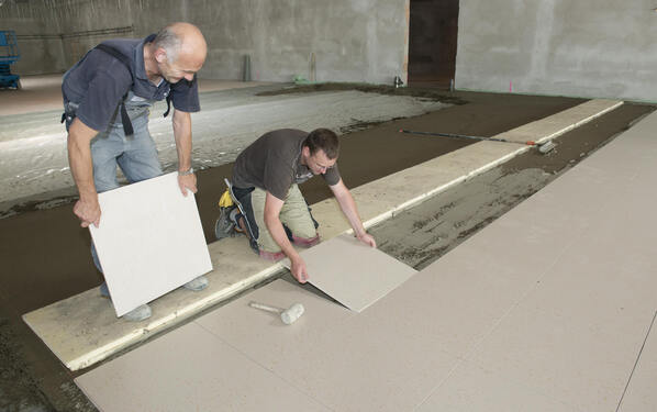 Sichere Verlegung von Rüttelbodenbelägen 60 x 60 cm mit vorkonfektionierter Haftschlämme