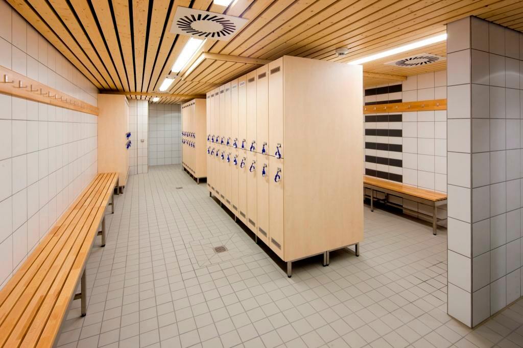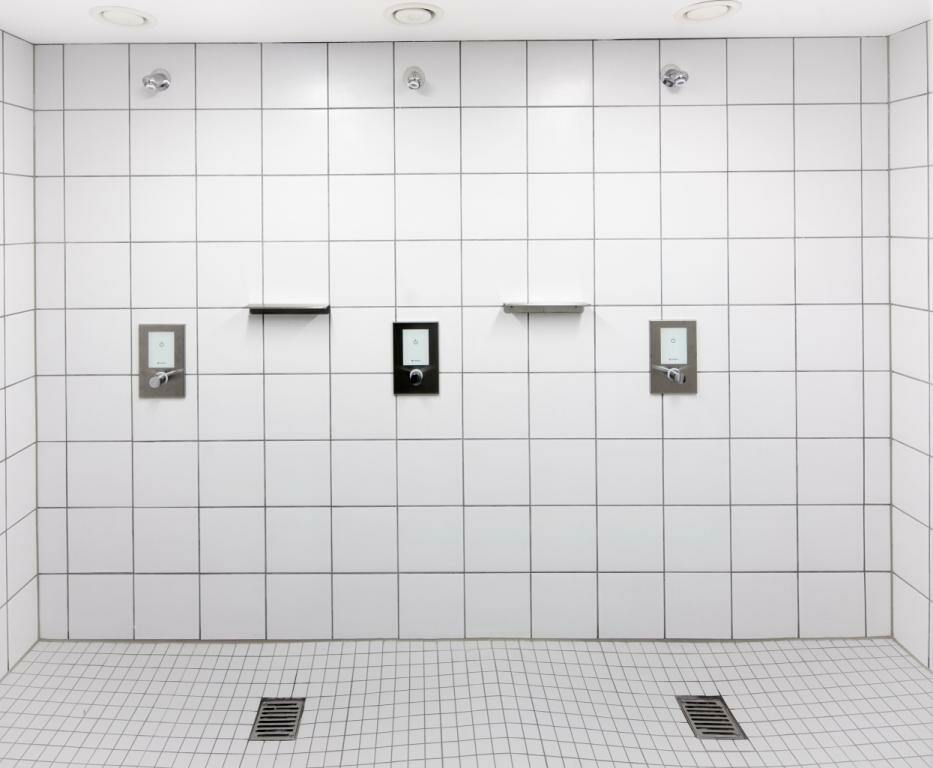 Die Putz- und Estrichflächen in den Duschen, Umkleiden und allen sonstigen Räume dichtete die Fliesenbau-Firma mit der Sicherheits-Dichtschlämme PCI Seccoral 2K, der wasserdichten, flexiblen Schutzschicht Lastogum, dem Spezial-Dichtband PCI Pecitape und Dichtmanschetten ab. Danach wurden die Wandfliesen mit dem Fliesenkleber FT-Extra und die Bodenfliesen mit dem flexiblen Schnell-Fliesenkleber PCI FT Rapid angebracht und mit dem zementären Spezial-Fugenmörtel PCI Durafug NT verfugt.