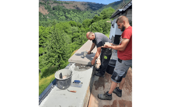 Die anschließende Verlegung der neuen, massiven Grauwacke-Mauerabdeckungen erfolgte in mehreren Schritten. Die Handwerker trugen eine Kontaktschicht aus PCI Carrament grau auf und überzogen sie mit PCI Carraroc in der gewünschten Schichtdicke von maximal 40 mm. Beide Baustoffe bieten optimale Ergebnisse für die Verlegung von großformatigen Platten. PCI Carraroc eignet sich perfekt für das Setzen von Natursteinen sowie das Fixieren von Natursteinmauern und Randsteinen. Der Mörtel zeichnet sich durch seine Flexibilität, hohe Standfestigkeit und dauerhafte Widerstandsfähigkeit gegen Bewitterung aus, was am Standort der Urfttalsperre von entscheidender Bedeutung ist.