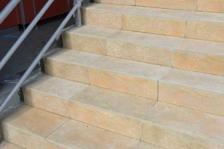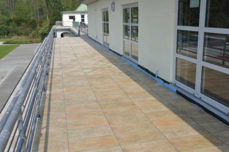 Im vergangenen Jahr stand das begehbare Dach des unter Denkmalschutz stehenden Jugendstilgebäudes und seiner Treppenanlage zur Sanierung an. Großflächige Undichtigkeiten und Kalkauslaugungen an den Treppen hatten sich gezeigt. Rechtzeitig vor Beginn der zweiten Badesaison im neu hergerichteten Volksbad galt es eine neue Dachabdichtung und Fliesenbelag auf einer Fläche von rd. 860 Quadratmetern auszuführen. Zum Leistungsumfang zählten außerdem 88 Treppenstufen und 10 qm Treppenpodeste.