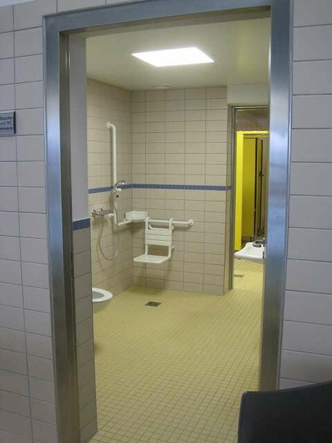 Sanierung des kompletten Schwimmbadumgangs und der Wände sowie der Duschen und der behindertengerecht umgebauten Toilettenanlage