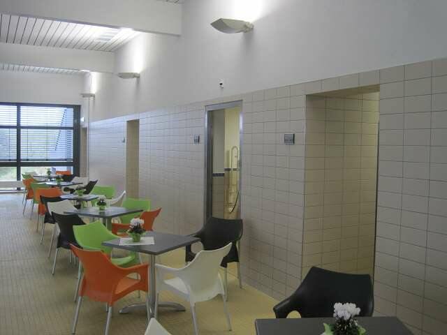 25 m Becken-Schwimmbad, ca. 430 m² Bodenfliesen, davon 230 m² Beckenumgang; 280 m² Wandfliesen (Dusche, WC und Schwimmbeckenbereich)