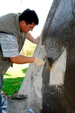 Um den außerordentlich gepflegten Zustand der Anlage zu erhalten, gibt es praktisch immer etwas zu tun. Und so galt es unlängst, den Verputz zweier Betonwände an einer Stützmauer zu erneuern.