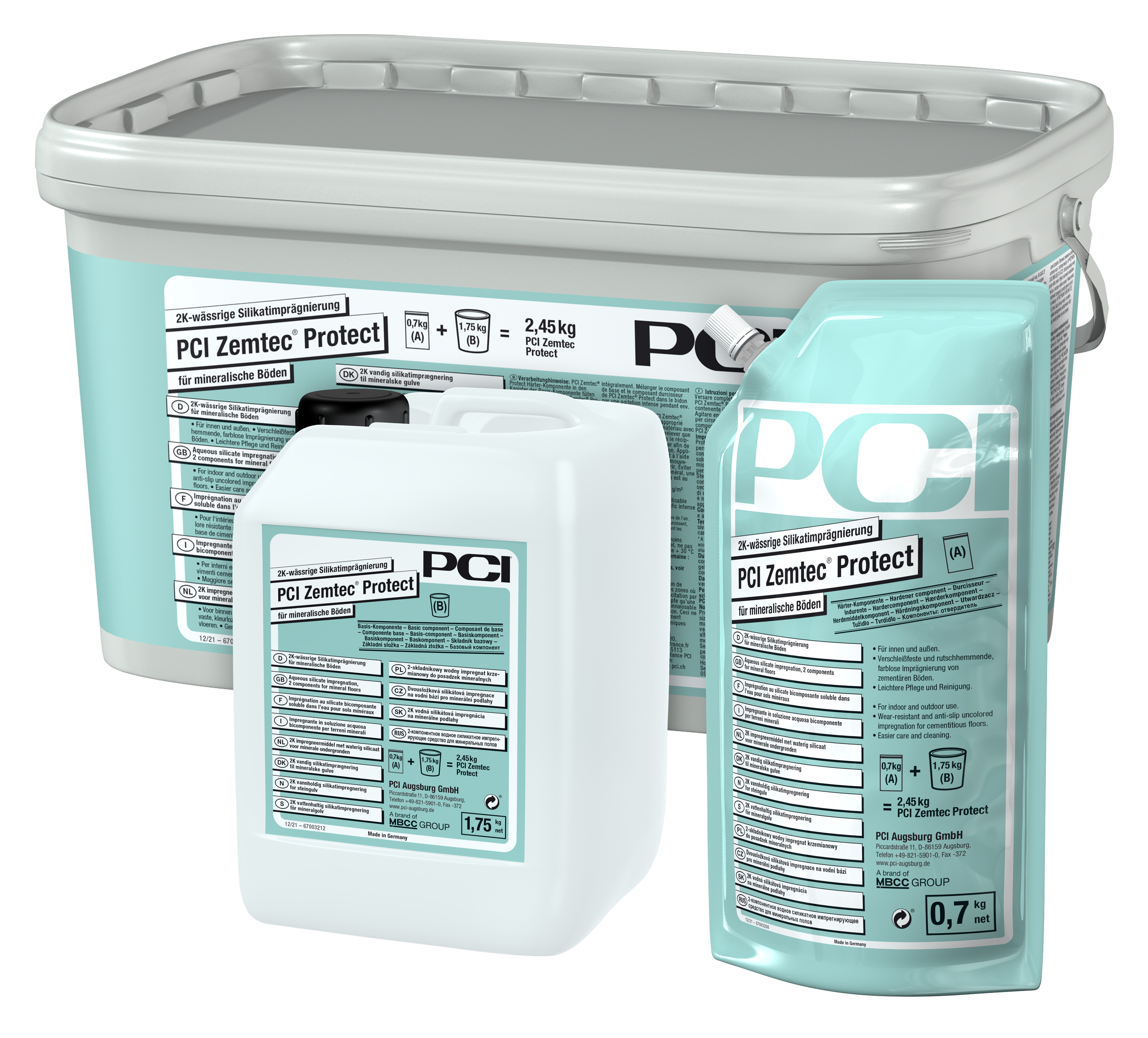 We recommend to treat the surface with the aqueous, mineral impregnation PCI Zemtec Protect as additional protection against stains and for easier cleaning of the surfaces. The product is offered in a practical combined unit containing the two components in the appropriate mixing ratio.