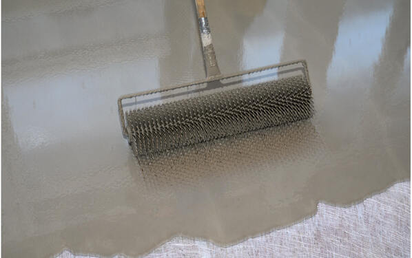 The critical substrate required a bonded floor leveler. The craftsmen used the glass fiber reinforcement PCI Armiermatte GFM. This strengthens the leveling compound and increases its tensile and flexural strength. The reinforcement mat, which is to be applied loosely, is suitable for substrates with cracks up to a width of approx. 3 mm with minor movements to be expected. The uncomplicated and quick installation of the glass fiber reinforcement is particularly practical as well as the high application security. The glass fibers which are initially held together in mat form by a special binding agent, can be easily cut to the room dimensions and laid out on the primed and dried substrate with an overlap of around 1 cm. This is followed by the flowable floor leveling compound which covers the reinforcement fibers. They remain highly concentrated in the lower leveling layer and have a planar effect in all horizontal directions.