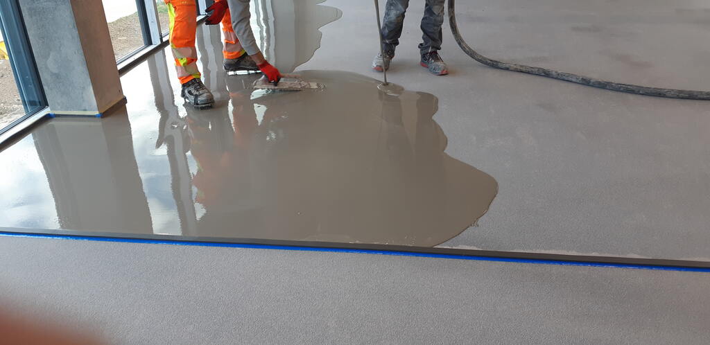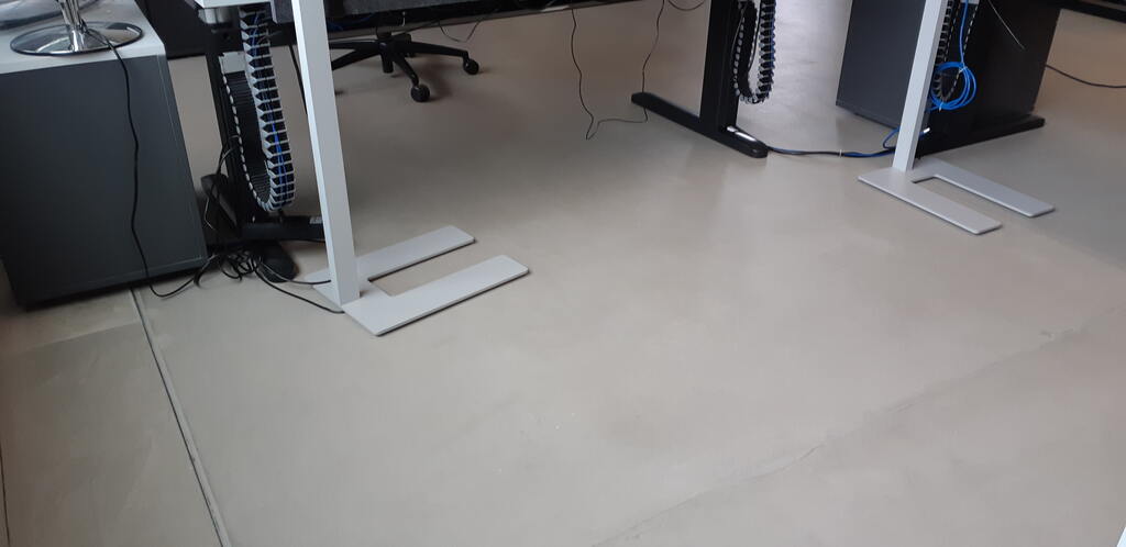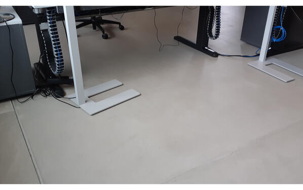 Zementärer-Bodenausgleich in Betonoptik, auf bestehende Zementestriche und Kabelkanalabdeckungen