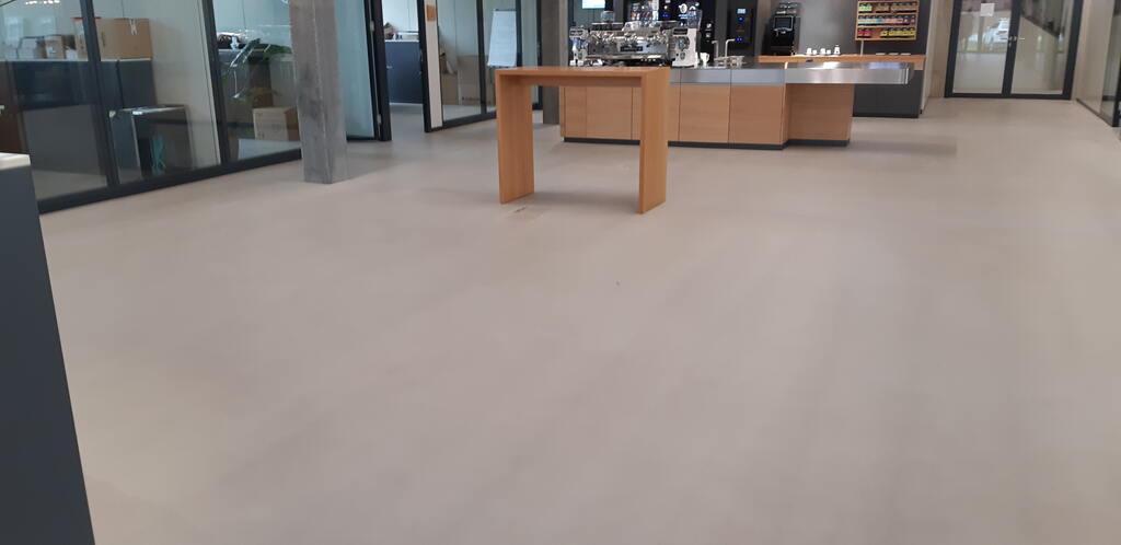 Im Neubau der Dallmayr Automatenservice in Niederbuchsiten sollen die Böden in den Büroräumlichkeiten und im Ausstellungsraum mit einem Bodenbelag in Betonoptik beschichtet werden, ebenso die Abdeckungen der im Boden geführten Kabelkanäle. Ein einheitliches Gesamtbild der Böden in Betonoptik war dem Bauherrn besonders wichtig. Nach der Besichtigung einiger interessanter Referenzobjekte konnte sich die Bauherrschaft ein Bild von Böden in Betonoptik machen. Die Entscheidung fiel auf den zementären Bodenausgleich PCI Periplan Multi.