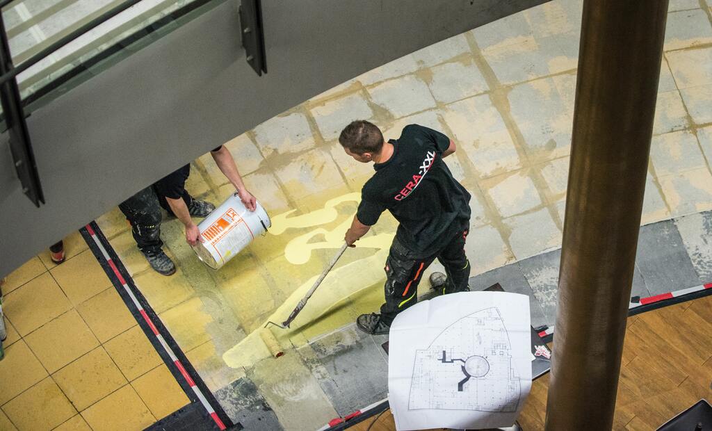 To avoid any adverse impact on business, the tiling team worked only at nights for the entire duration of the project. Surfaces tiled during the night were to be ready for use at 8 a.m. the next day, while the surfaces to be worked on during the next night shift also had to be prepared. All the surfaces had to be suitable for pedestrian access without any tripping hazards. To meet this tight time schedule, the tiling contractor needed fast-setting materials. For Michael Franke, Managing Director of CERA-XXL, it was clear from the outset: “This project was a challenge in every respect – restricted working times, short time cycles for individual steps and large tiles. It was quite clear that we were going to use PCI products for the work. As a result of the short setting times of these products, we were able to complete various steps in rapid succession and to release the tiled surfaces for use by visitors every morning, which was especially important in this case.