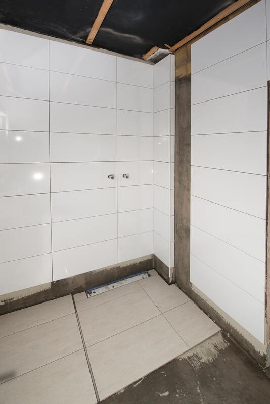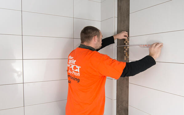 After 21 years Rolf Wiegner from Moers finally decided to turn his bathroom into a modern, barrier-free interior. For the total refurbishment of the interior, the homeowner opted for the competent advice of contractors Altbausanierung Jansen in Duisburg and construction chemicals manufacturer PCI Augsburg GmbH. The result: Since the end of January 2013 the Moers resident has been the owner of a modern, light bathroom that, given the product quality and service of specialist PCI Augsburg GmbH, does more than merely look safe. Large-format tiles were laid on the walls and floor in order to make the small interior measuring no more than approx. 5 m² look larger. A practical and real time-saving feature of the site was that on some of the walls tiles could be laid on top of the existing tiles. Since the walls were very uneven and there were some quite large holes in them, PCI Nanocret R2 was used to even out the surfaces. Pre-wetting the walls was all that was needed to ensure good adhesion of the repair mortar, and avoid the water dehydrating too quickly. Contractor Andreas Jansen applied PCI primer Gisogrund in the places where PCI Nanocret R2 was used and on the other porous substrates and the special wash primer PCI Gisogrund 303 on any non-porous surfaces in the room. Having primed the different types of substrates, the construction professionals then made certain that the shower area in particular remained waterproof. Thanks to their wide range of applications, flexible waterproofing slurries, such as PCI Seccoral 2K Rapid, are a reliable construction material when it comes to waterproofing immediately underneath tiles. To waterproof the corners and joints between components, the workers laid down the special waterproofing tape, PCI Pecitape 120, in the appropriate places. PCI markets a tried and tested system for large-format ceramic tiles. Hence the flexible tile adhesive PCI FT Flex was used following priming and waterproofing. The final stage involved applying the flexible joint grout PCI Nanofug Premium and sealing the corners and joints between components with silicone joint sealants PCI Silcoferm S, DIN-Polyband and PCI smoothing agents.