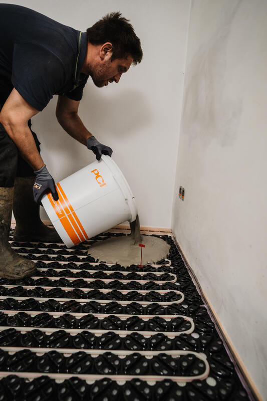 "The new underfloor heating was installed in three days and also has the advantage that no further leveling compound is required for the subsequent laying of the vinyl floor. That accelerates the construction progress," says Lutz Müller and adds: "The ClimaComfort® Compact system together with the PCI products completely convinced me, also for my own business, the construction of turnkey wooden houses. The fewer trades required for a construction phase, the better.”
