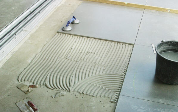 For a terrace to inject a small bit of luxury into the monotony of everyday life, not only is it necessary to carefully select the upper covering, it is particularly important to ensure the right technology is used for the substrate in order to meet the high requirements placed on it. A terrace in Murnau was therefore renovated and extended by professionals who used large-format fine porcelain stoneware tiles with the proven products of construction chemicals manufacturer PCI Augsburg GmbH. A special feature of the terrace is the underlying garage with the external section comprising a flat roof. In order to protect the space below the terrace against the ingress of water, a professional seal was installed including two drainage points. The construction professionals manufactured a particularly high quality, reliable and durable insulating layer from insulation panels of mineral foam glass, which were fixed in place using PCI Pecimor DK bitumen adhesive for insulation boards. The installers sealed the upper side of the insulation panels with PCI Seccoral 2K Rapid fast-setting special waterproofing slurry. This gave the garage a water-tight roof and a stable substrate for the tiled surface of the terrace. Drainage mats were placed on the previously installed waterproofing onto which the PCI Pavifix DM drain and screed mortar was applied. This acts like a support layer. By providing the entire covering with a grid structure, the mat and mortar system ensures fast and immediate drainage. The drain and screed mortar also protects against frost damage and reduces efflorescence. Before the installers laid the tiles using a special floating-bed mortar for porcelain coverings, they applied a scratch coat to the back of the tiles to ensure a better keying of the tiles and the tiling adhesive. PCI Rapidflott was used to lay the new quick-hardening floor covering. To turn the mortar into an even more ductile product yet more resistant to water, frost and weather, the installers added PCI Lastoflex polymer modified additive to the cement mortar mix. This is because tiling adhesives mixed with this relieve substrate stresses, balance out stresses resulting from temperature fluctuations and are waterproof and frost- and weather-resistant. The grouting of the covering should be highly elastic in order to compensate for the length variations of the large-format tiles during changes in temperature. This is why all grouted joints were sealed with the elastic, self-adhesive PCI Silcoferm S silicone joint sealant.