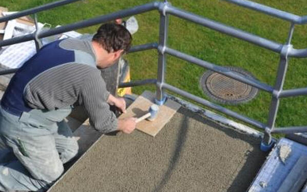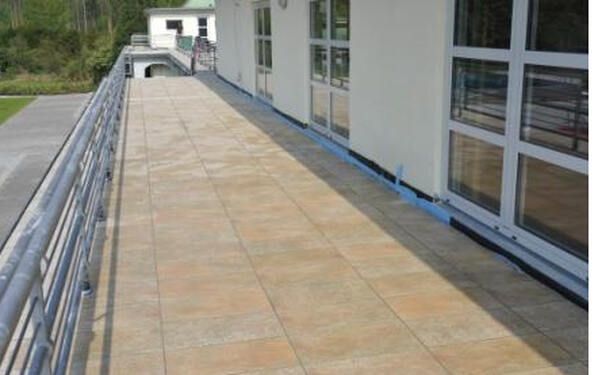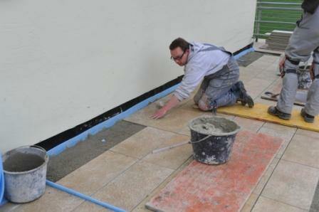 The expert consulted by the owner recommended a panels sealing conforming to DIN 18195-T5 standards under a covering of ceramic elements on a loose chippings bed. Considering the reduced headroom, the constructor decided for bonded tiling and the configuration of an effective drainage system using Gutjahr AquaDrain® EK drainage mats and PCI Pavifix DM drain mortar. The solution has been worked out jointly by Lepping GmbH & Co. KG involving applications engineers Messrs Ludwig and Marx of PCI Augsburg GmbH and by Mr. Gutjahr – Managing Director of Gutjahr Innovative Bauelemente GmbH and publicly appointed and sworn expert.