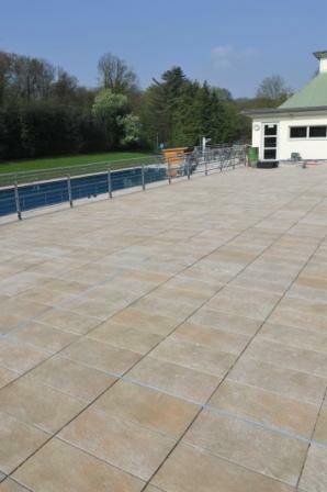 Last year the walkable roof of the listed art nouveau building with its staircases was due for restoration. Large area leakages and chalk leachings had shown on the stairs. In good time prior to the start of the second bathing season in the refurbished Volksbad, a new roof sealing and tile cladding had to be carried out on a surface area of approx. 860 sqm. Also included in the range of services were 88 steps and 10 sqm of stair landings.
