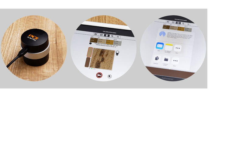 PCI Colorcatch Nano, the digital color measurement device visualizes matching color harmonies in a matter of seconds. The tool precisely measures the color of smooth, structured or patterned surfaces and lays the foundation for harmonious results.