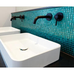 PCI Durapox Premium Multicolor especially for high-quality surfaces such as glass mosaic - and in exactly the right turquoise tone. Practical for processors and builders: the grout can be inserted smoothly and is very easy to wash and clean.