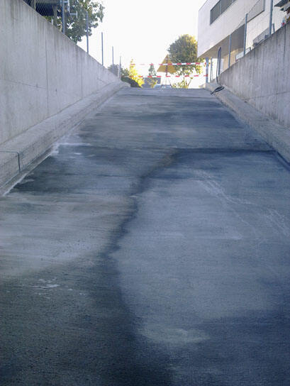 - Am nächsten Tag in 10m2 Etappen Mörtel aufbringen, abziehen, taloschieren und Besenstrich-Struktur einwischen