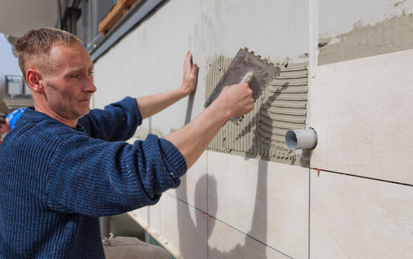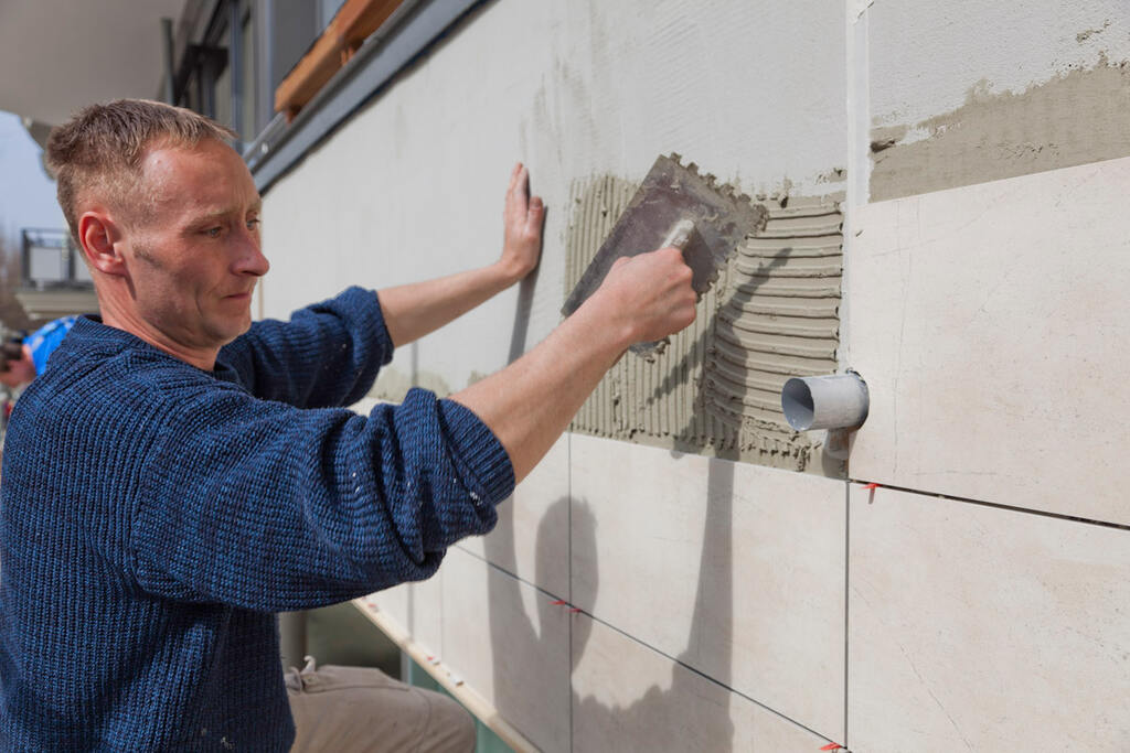Auf dem insgesamt 120 m² großen Betonuntergrund führten die Fliesenleger zunächst Ausbesserungsarbeiten und die Egalisierung von Unebenheiten mit dem PCI Fassadenspachtel aus. Eine dünne Kontaktschicht wurde anschließend mit dem PCI Fassadenkleber aufgezogen und die armierten CeraVent Bekleidungsträgermatten direkt in der aufgekämmten Kleberschicht fixiert. Gemäß Dübelplan verankerten die Verarbeiter die CeraVent Systemdübel im Untergrund und spachtelte die Matten dann vollflächig mit PCI Fassadenspachtel aus. Während der Trocknungszeit konnten die Be- und Entlüftungsprofile von Gutjahr gesetzt werden. Durch die Belüftung und Entkopplung des keramischen Belags vom Untergrund werden Schäden, die bei einer direkten Verlegung drohen, dauerhaft vermieden. Im nächsten Schritt wurde eine ca. 4 mm dicke Schicht mit dem PCI Fassadenspachtel aufgezogen und das CeraVent Armierungsgewebe eingebettet. Auf der durchgetrockneten Armierungsschicht verlegte Karsten Ramlow mit seinen Mitarbeitern die großformatigen Fliesen der Serie KerAion mit PCI Fassadenkleber und führte die Verfugung der Belagsfugen mit PCI Fassadenfug aus. Bewegungs- und Anschlussfugen wurden zunächst mit PCI Elastoprimer 145 vorbehandelt und anschließend elastisch mit dem PU-Dichtstoff PCI Elritan 100 geschlossen. Die Bilanz nach der Durchführung der Arbeiten war durchwegs positiv: Die Balkongestaltung war fachlich wie auch optisch rundum gelungen und für Kasten Ramlov und sein Team eine erste gute Referenz für Folgeprojekte mit dem CeraVent Fassadensystem.