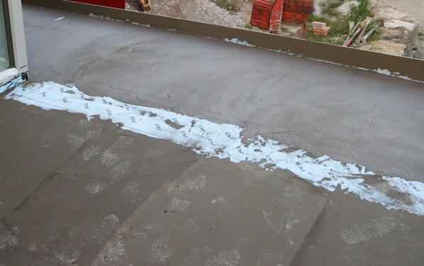 Eine Besonderheit der Terrasse ist die darunter liegende Garage. Dadurch wird der Außenbereich zu einem Flachdach. Um den Raum unter der Terrasse vor eindringendem Wasser zu schützen, wurden eine fachgerechte Abdichtung hergestellt und an zwei Stellen Punktentwässerungen eingebaut. Mit Dämmplatten aus mineralischem Schaumglas fertigten die Bauprofis eine besonders hochwertige, sichere und widerstandsfähige Dämmschicht an, die mit dem Bitumen-Dämmplattenkleber PCI Pecimor DK einklebt wurde. Die Oberseite der Dämmplatten dichteten die Verarbeiter mit der schnellabbindenden Sicherheits-Dichtschlämme PCI Seccoral 2K Rapid ab. Auf diese Weise sind ein dichtes Dach für die Garage und gleichzeitig ein beständiger Untergrund für den Fliesenbelag der Terrasse entstanden.