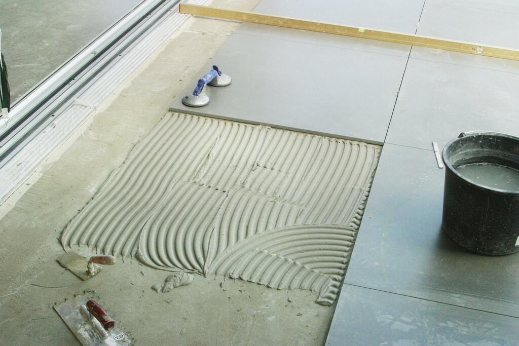 Auf der zuvor erstellten Abdichtung kamen Drainagematten zum Einsatz, auf die der Drainmörtel PCI Pavifix DM aufgebracht wurde. Diese Lage wirkt ähnlich wie Stelzlager. Durch die komplette Aufstelzung des Belages sorgt das System aus Matte und Mörtel für eine schnelle und verzögerungsfreie Entwässerung. Darüber hinaus verhindert der Drainmörtel Frostschäden und vermindert Ausblühungen. Bevor die Verarbeiter die Fliesen mit einem speziellen Fließbettmörtel für Feinsteinzeugbeläge verlegten, stellten sie für eine bessere Bindung von Platten und Verlegemörtel eine Kratzspachtelung auf der Plattenrückseite her. Mit PCI Rapidflott wurde der neue Bodenbelag schnellerhärtend verlegt. Um den Mörtel zu einem noch verformungsfähigeren und beständigeren Produkt gegen Wasser, Frost und Witterung zu modifizieren, ergänzten die Verarbeiter die Zementmörtelmischung mit dem flexibilisierenden Zusatz PCI Lastoflex. Denn damit abgemischte Verlegemörtel bauen Untergrundspannungen ab, gleichen Spannungen infolge von Temperaturschwankungen aus und sind wasserfest sowie frost- und witterungsbeständig. Die Verfugung des Belages sollte hochelastisch sein, um die Längenänderungen der großformatigen Fliesen bei Temperaturwechsel ausgleichen zu können. Deshalb wurden alle Fugen mit dem elastischen, selbsthaftenden Silikon-Dichtstoff PCI Silcoferm S geschlossen.