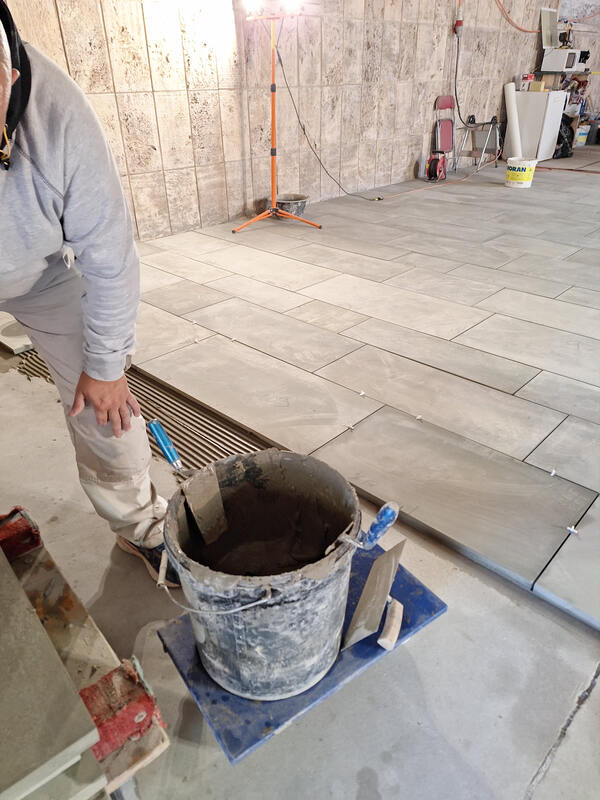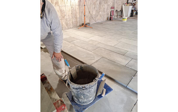 Pendant la remise en état, sur une surface totale de 650 m2, des carreaux ont été collés sur un nouveau support de chape avec PCI Gisogrund®, les pierres naturelles de molasse ont été posées avec le mortier PCI Carrament® gris et jointoyées avec le mortier de jointoiement flexible variable PCI Nanofug® Premium.