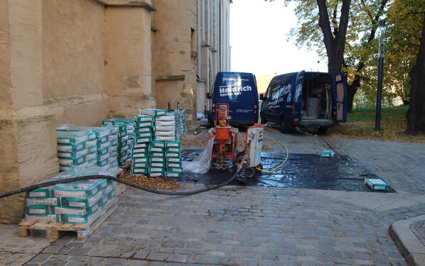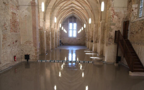 Das Franziskanerkloster am Südrand der Zeitzer Altstadt gehört zu den am besten erhaltenen Klosteranlagen in Sachsen-Anhalt. Die Stadt nutzt die Klosterkirche seit 2011 als einen beliebten Veranstaltungsort. Nach den ersten Events wies der Estrich über dem unregelmäßigen Sandsteinpflasterbelag partielle Fehlstellen, flächige Hohllagen und Risse auf. Daher wurde der Fußboden der Klosterkirche auf einer Fläche von 450 m² erneuert.