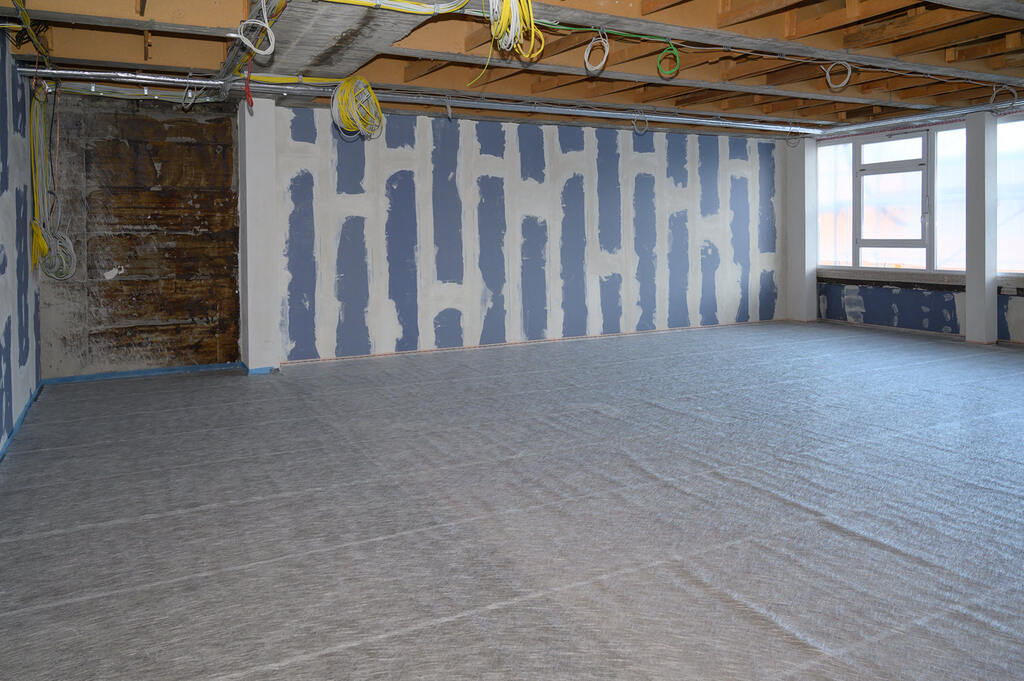 Untergrundvorbereitung eines rissigen, minderfesten Estrichs mit Verbundausgleich für die nachfolgende Teppichverlegung
