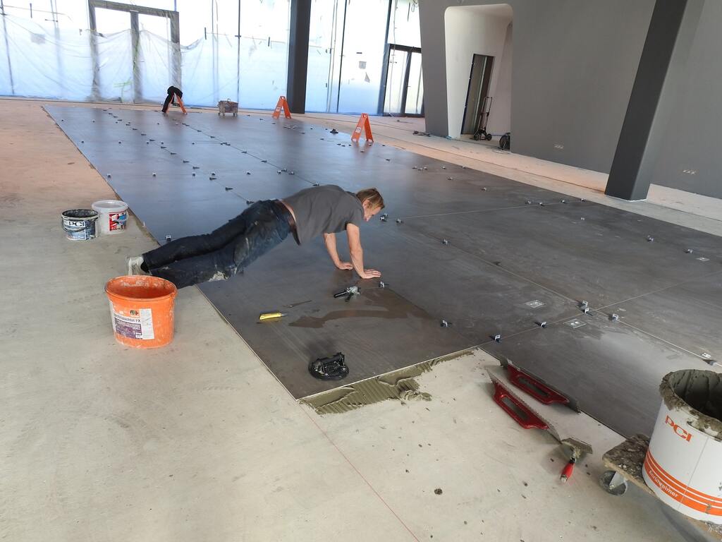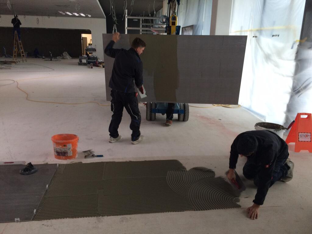 Verlegung großformatiger Bodenfliesen mit Maschinentechnik