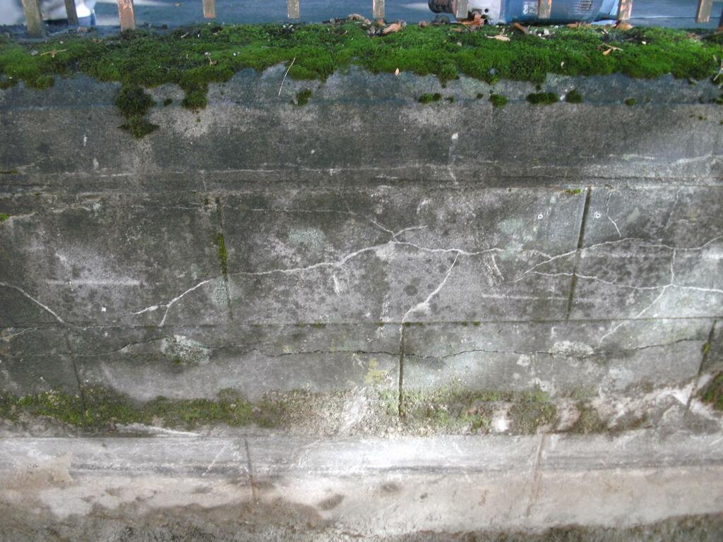 L'étendue réelle de la réparation apparut seulement lorsque les parties fissurées qui n'étaient plus portantes eurent été éliminées. L'enlèvement du béton c’est effectué par bouchardage car le béton était déjà tellement abîmé qu'il pouvait ainsi être enlevé sans émettre trop de bruit. Ce qui restait du mur ne permettait plus de le reconnaître à son état d’origine. Par contre, il offrait une surface très rugueuse, idéale pour l'application d'un mortier de réparation par projection.