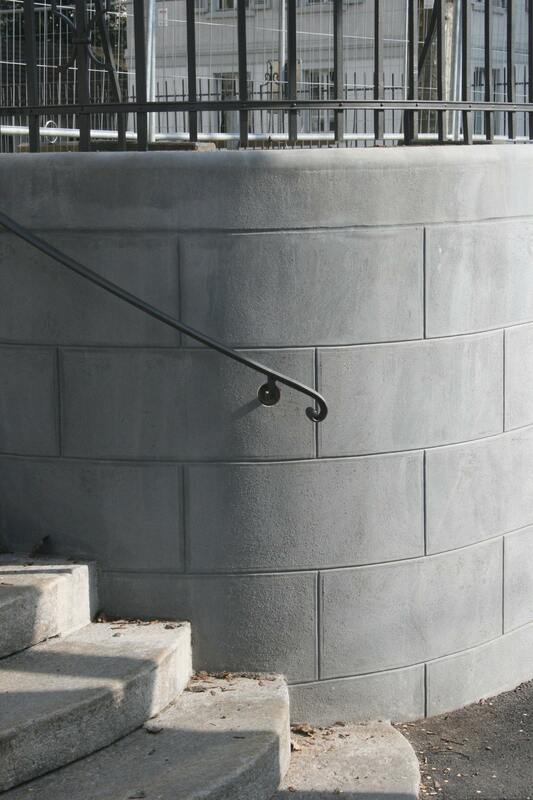 Dans le cadre de cette rénovation, une réparation du béton non armé du mur d'enceinte datant d'env. 100 ans était nécessaire. Le mur en béton était fortement fissuré et présentait des altérations dues aux intempéries. Un détail intéressant de ce mur est constitué par les joints, qui doivent imiter un mur en pierres naturelles. Le but de la réparation du béton était de rétablir l'aspect du mur en béton tel qu'il devait se présenter il y a de nombreuses années.