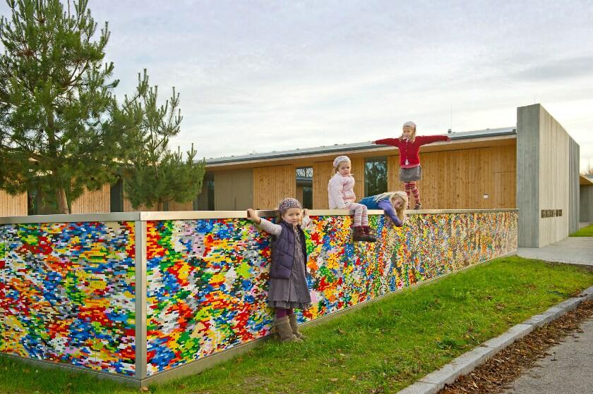 250.000 Legobausteine zieren die 26 m lange Brüstung im Eingangsbereich des Ingeborg-Ortner-Kinderhauses auf dem Hochschul- und Forschungszentrum der TU München in Garching. Die Künstlerin und Professorin Tina Haase kreierte diesen „realphantasierten“ Kindertraum, der beim Betreten des Kindergartens eine Art flash-back zur eigenen Kindheit vermitteln soll. Für die Grundierung und Verklebung der Legosteine kamen PCI-Produkte zum Einsatz.