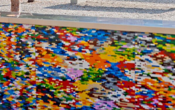 Verkleidung einer Betonmauer mit 250.000 Legosteinen