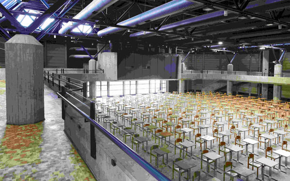 Zur Egalisierung des Bodens beförderten die Handwerker innerhalb von zwei Tagen 20 Tonnen Universal-Spachtelmasse PCI USP 32 in maximaler Schichtdicke von 20 mm auf den Boden der Aula. Die Ausgleichsmasse ist leicht verlaufend, schleifbar, staub- und spannungsarm. Zum Entlüften verwendeten die Handwerker eine Stachelwalze. Um Schallbrücken zu vermeiden und den erforderlichen Bewegungsspielraum im Rahmen des Systemaufbaus zu gewährleisten, wurde zuvor der selbstklebende Randdämmstreifen PCI Pecitape Silent für den Boden-Wand-Anschluss angebracht. Auf der gehärteten und tragfähigen Spachtelmasse verklebten die Handwerker die Dämmunterlage PCI DU 903 FH mit dem lösemittelfreien SMP-Parkettkleber PCI PAR 365.