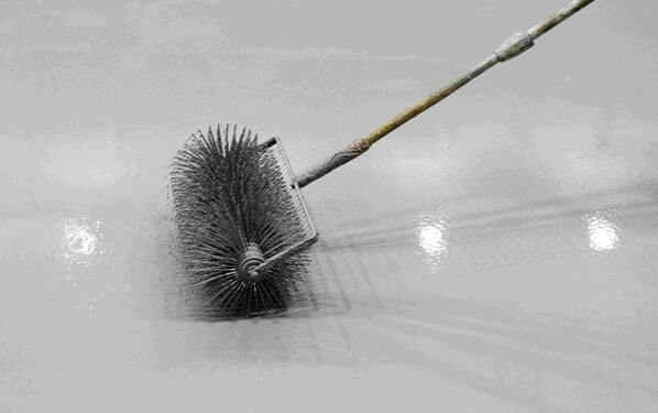 Der Wasserschaden hatte den Boden der 1140 Quadratmeter großen Aula so sehr zerstört, dass ein kompletter Rückbau bis auf den Rohbeton erforderlich war. Als Feuchtigkeitssperre grundierten die Handwerker des beauftragten Raumstudios Stern aus Tannhausen den gesäuberten Untergrund mit der lösemittelfreien, 2-komponentigen Epoxidharzgrundierung PCI Epoxigrund 390 im zweimaligen Auftrag. In den ersten Anstrich arbeiteten die Bodenleger die PCI Armiermatte GFS, eine Glasfaser-Verstärkung zur Überbrückung bestehender Risse, ein. Danach erfolgte der nochmalige Anstrich mit PCI Epoxigrund 390, der mit dem Universal-Vorstrich PCI VG 2 zwischengrundiert wurde.