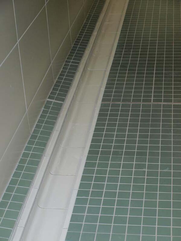Die Garderoben und Sanitäranlagen wurden komplett neu aufgebaut. Die Böden wurden mit PCI Novoment M1 plus eingebracht, Böden und Wände überspachtelt mit PCI Pericret, um Unebenheiten und Gefälle ausbilden zu können. Abgedichtet wurde mit PCI Seccoral 2K Rapid in zwei Schichten, um die geforderten 2mm zu erhalten, den Dichtbändern PCI Pecitape Objektband, PCI Pecitape Ecken, PCI Pecitape Manschette 10x10. Das Mosaik am Boden und die Platten an den Wänden wurden verklebt mit PCI FT Extra. Es wurde in Augsburg im Labor getestet. Die Wände wurden mit PCI Nanofug silbergrau ausgefugt. Die Böden wurden mit dem 2-komponenten Fugenmateiral PCI Durapox NT plus gemacht. Die Silikonfugen wurden mit dem speziellen PCI Silcoferm VE ausgebildet, das extra für den Schwimmbadbereich entwickelt worden ist.